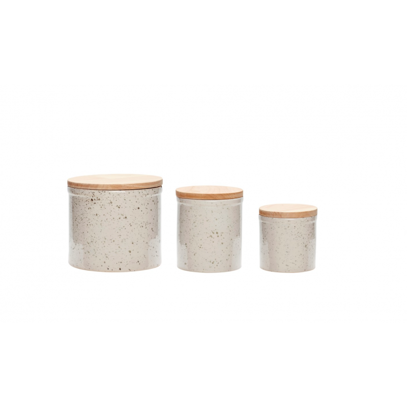 Tarro cerámica con tapa en madera ø9x10h, ø12x13h y ø16x14h cm